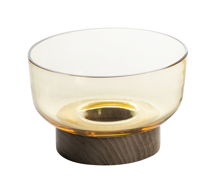 The glass bowl can be placed separately on the wooden base or on top of the Bonta lamp.