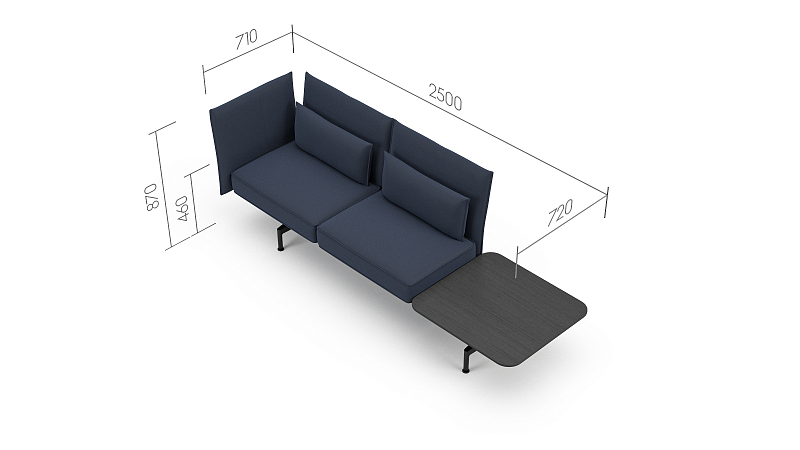 The Soft Work Sofa with table top on the right and side panel on the left combines comfort, technology and flexibility, making it an ideal choice for modern work environments. It is visually appealing and gives any room a stylish and contemporary feel.