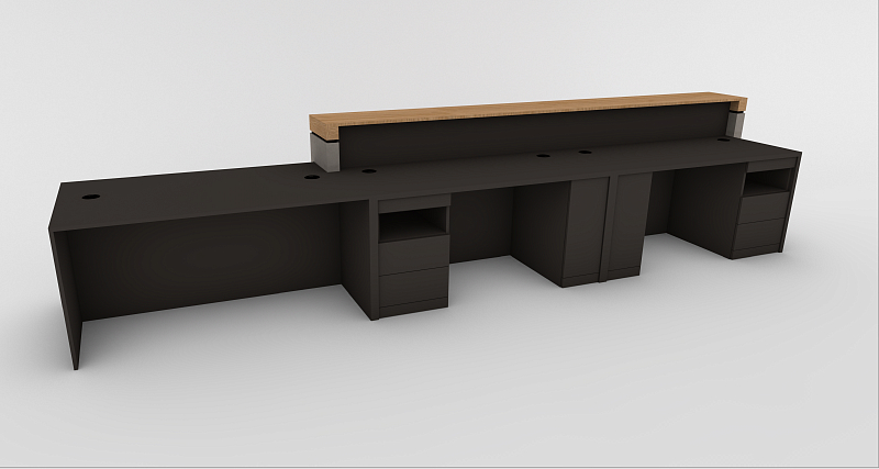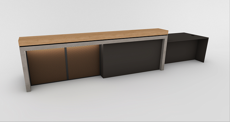 The table for the reception desk serves as a workstation and as a contact point for wheelchair users.