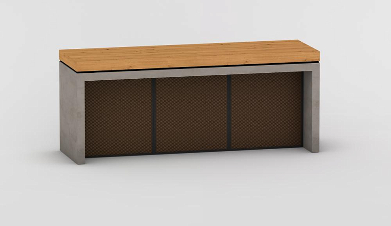 The authentic SP4005 concrete look from Of-Stone is used for the outer cheeks. It is of high quality and is handmade from sustainable natural mineral materials. The counter area is made of wild oak. This precious wood has a strong character due to its variety of branches. The surface is treated with a durable oil surface.
