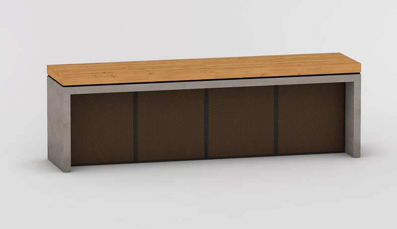 The authentic SP4005 concrete look from Of-Stone is used for the outer cheeks. It is of high quality and is handmade from sustainable natural mineral materials. The counter area is made of wild oak. This precious wood has a strong character due to its variety of branches. The surface is treated with a durable oil surface.