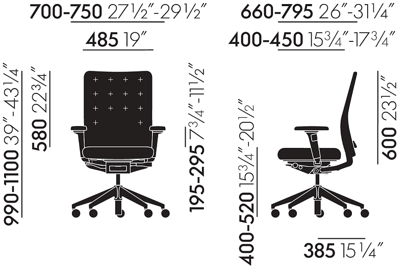 Seat depth: 40 - 45 cm