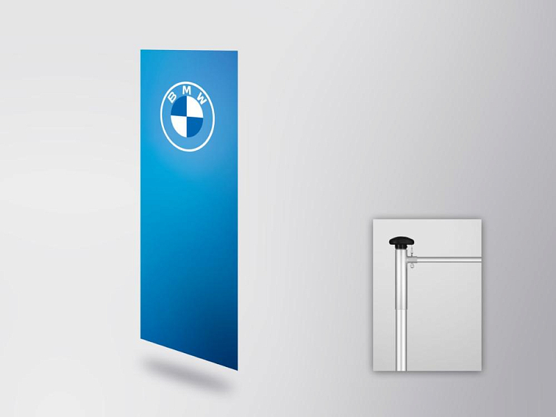Flag for flagpole with cantilever-arm and plastic hook. Tunnel for max. 40mm Ø cantilever-arm at the top, screen print, Material 100% Polyester.