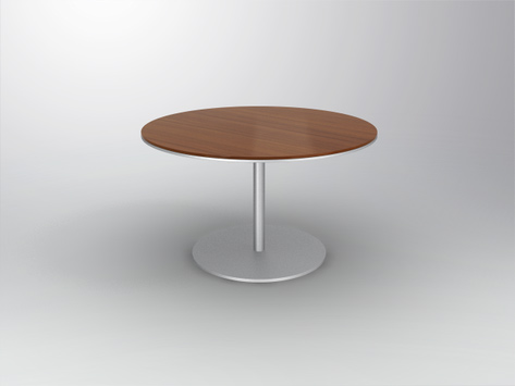 Lounge Table, metal base (460 mm) and leg silver coated, top (600 mm) american Walnut veneered.