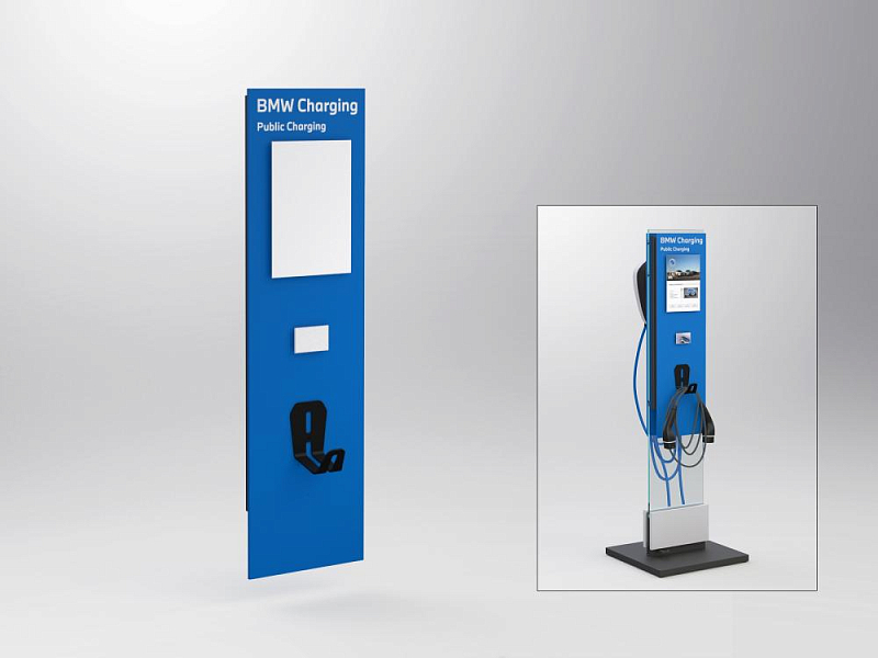 L 310 x W 162 x H 1080 mm, adapter plate for the BMW Mode 3 cable. Mounting plate made of silver matt powder-coated sheet steel for hanging on a PHEV 2.0 pedestal incl. a safety plate to prevent unhooking. Front panel made of wood, RAL (Default:D2 Design) 260-40-45 satin finish, incl. lettering "BMW Charging" "Public Charging", a pre-mounted cable holder made of black powder-coated sheet steel to accommodate a BMW Mode 3 cable, a pre-mounted information sheet holder DIN A4 and a pre-mounted card holder for cards in ID-1 format. The BMW Mode 3 cable and ID-1 card used must be ordered separately. These are not included in the scope of delivery.