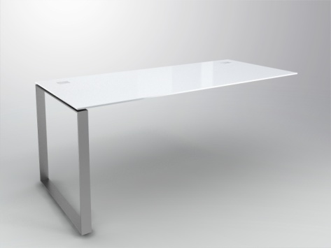 Desk for advisor-module, sliver coated frame and legs, white table board, with 2 cable outlets, cable duct, adjustable in height to balance unevenness of floor.