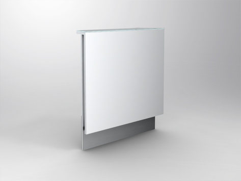 Front element for building of a corner element (in connection with a corner joint and a front element left side), substructure in wood, front- and top panel covered with 4 mm opti-white glass.