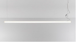 The linear elements are designed in different lengths and are attached to the ceiling by means of wire pendants.