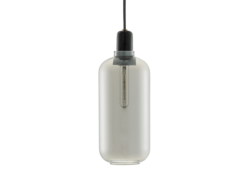Pendants with smoke glass are provided with a 4 m black textile cord and a black canopy. Bulb included.