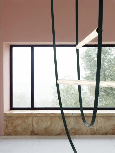 Hanging lamp with diffused light, designed with one light source, one power cable and nothing else.