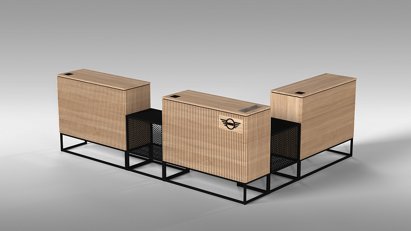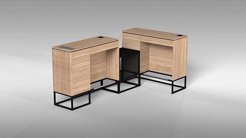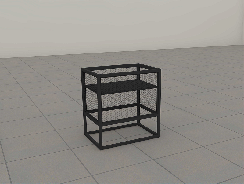 The module consists of a metal frame for presenting lifestyle products. The shelf is height-adjustable.