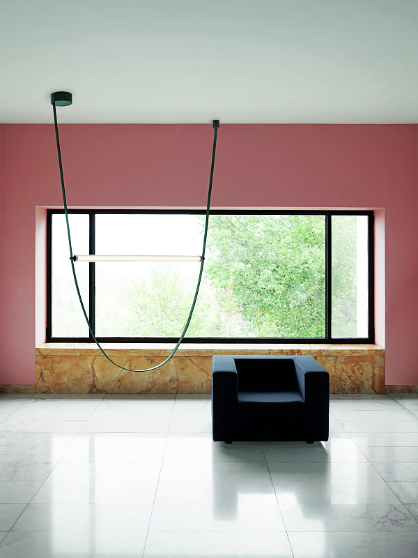 Pendant lamp with diffused light, designed with one light source, one power cable and nothing else.