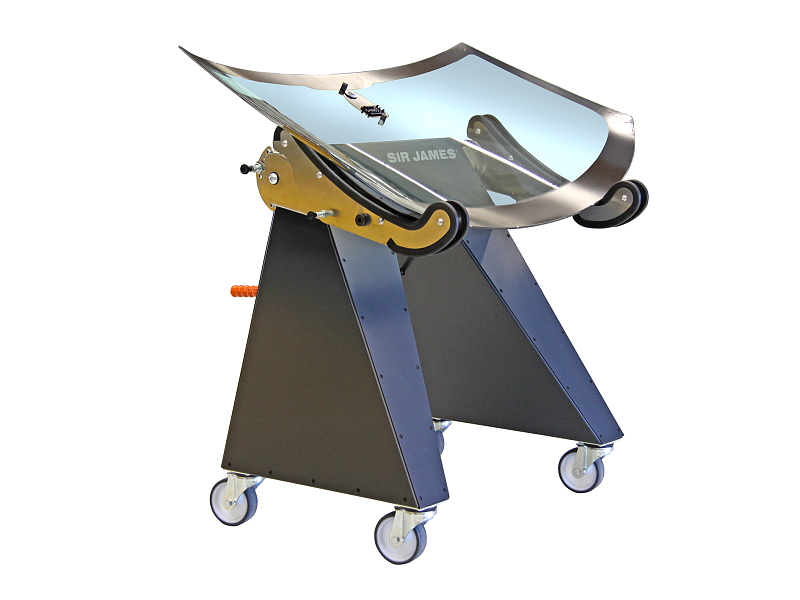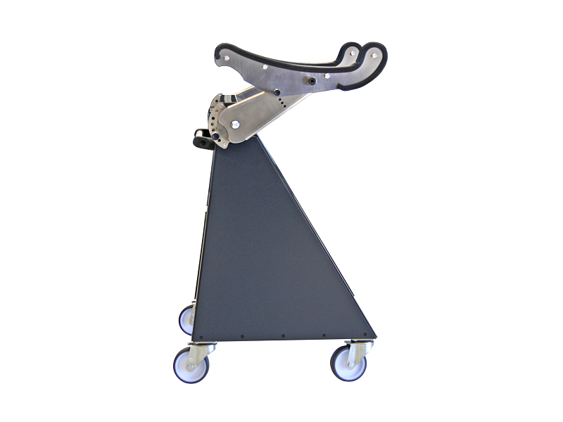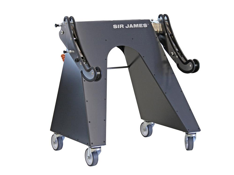 Sir James is a mobile assembly aid for safely picking up bulky and awkwardly shaped vehicle parts (bumpers, doors, front and rear hatches or front and rear windows) during dismantling and repair work. The picked-up part can be brought into an ergonomic and fixed position in just a few simple steps. The rubber coating on the pick-up arms means that newly painted vehicle parts can also be processed. The handbrake locks all 4 wheels simultaneously to prevent them from rolling away and twisting.