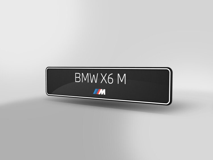 The number plate consists of a black polystyrene plate, which is thermoformed to give it an outer edge (relief, 2 mm offset upwards).