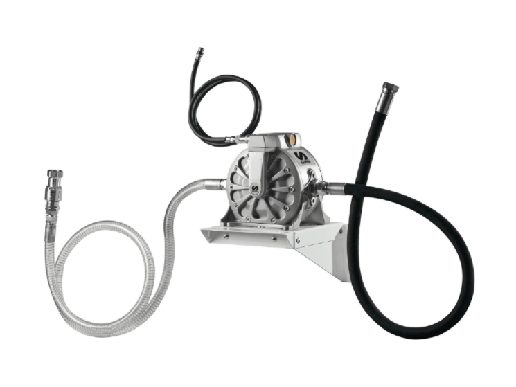Directflo® DF100 double diaphragm pump with suction hose and quick-release coupling for emptying waste oil collectors and waste oil carts