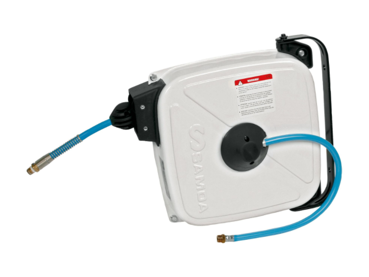 Hose reel for compressed air or water, closed version.