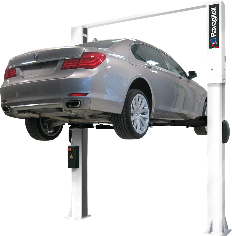 Electro-hydraulic two-post vehicle hoist with a load-carrying capacity of 3.2t.