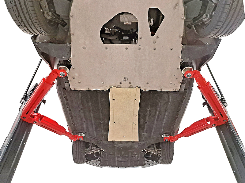 For the removal and installation of high-voltage batteries, electric vehicles must be positioned extremely precisely on a swivel-arm vehicle lift so that there is sufficient clearance between the high-voltage battery and the support arms of the vehicle lift. To simplify the positioning of electric vehicles, Autopstenhoj offers new 2-pillar and 2-post vehicle lifts. Each of the vehicle lift’s support arms is equipped with an e-car adapter. With insertion angles of 0°, 45° and 90°, the adapter allows for more clearance between the high-voltage battery and swivel arms.