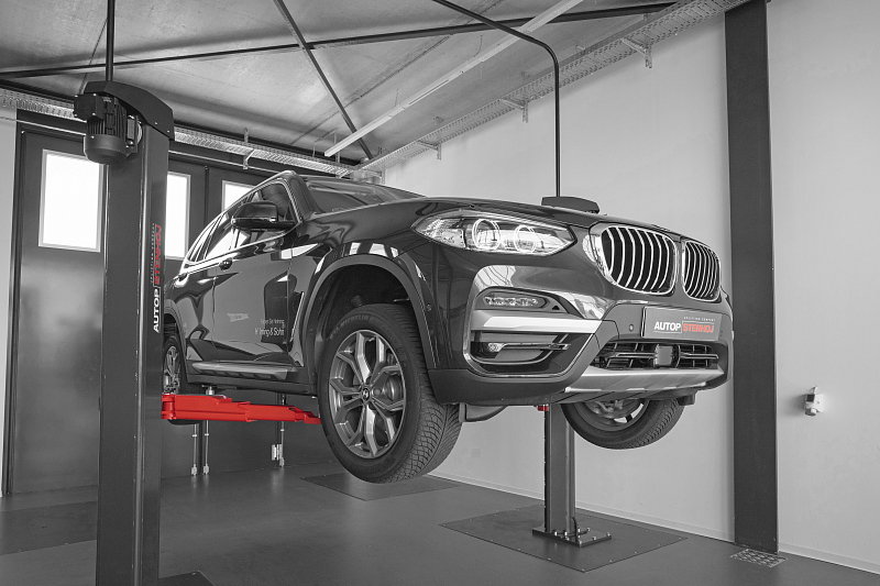 Electro-mechanical 2-post lift with a capacity of 3.5t.