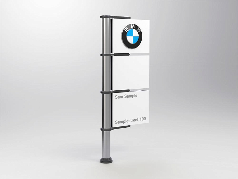 Pylon P4 for new foundation to be built on site. White, two-sided with illumination.