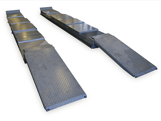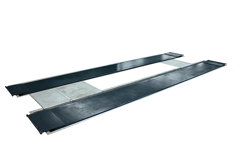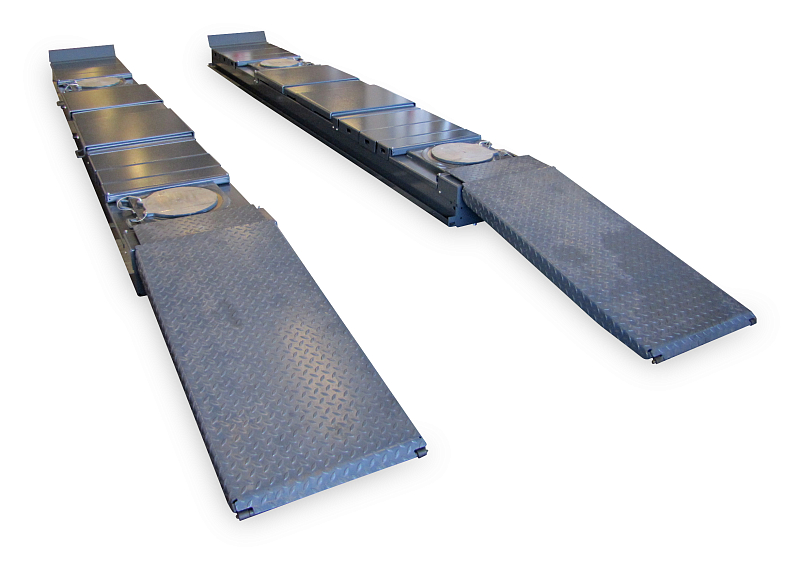 A 4-ram vehicle hoist designed specially for wheel alignment with a load capacity of 5000 kg.