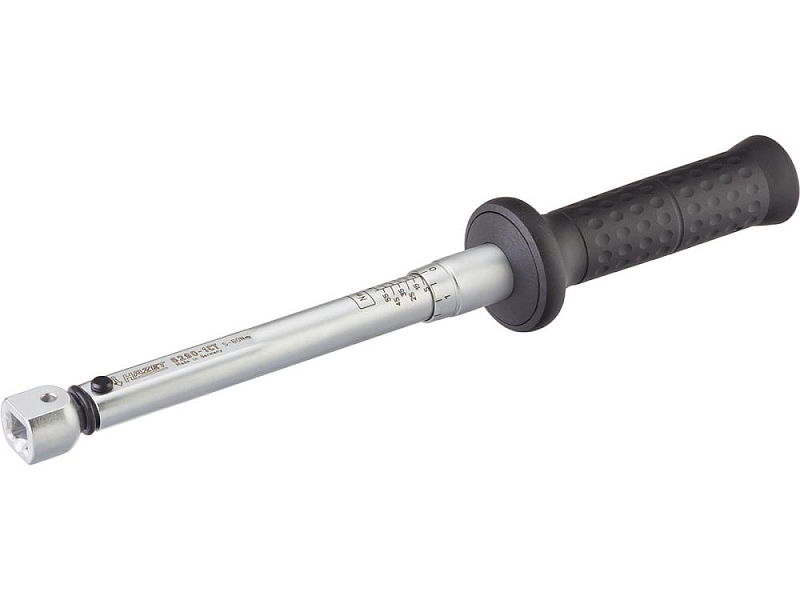 Tolerance: +/- 2 %, Insert square 9 x 12 mm, Torque value is set by turning the handle, Handle made from oil- and petrol-resistant plastic jacket, Acoustically and visually (red signal button) perceptible automatic short-travel triggering when the set torque value is reached