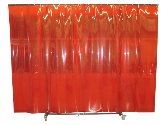Flexible protective wall (mobile) for separating workplaces for welding and grinding work, especially for aluminium body repairs.