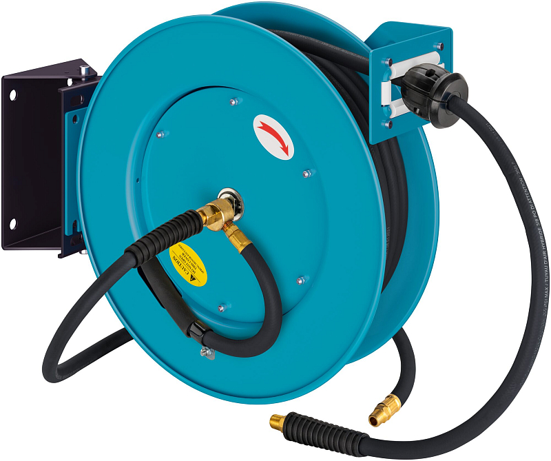 Automatic hose reel offers tidiness in the workshop – hose not left lying around, thus reducing the risk of accidents