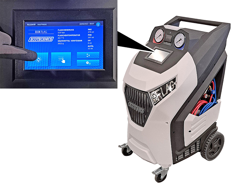 ECK FLAG is designed for different types of refrigerant. The standard features, Wi-Fi connectivity, gas analyser and high-quality components make ECK FLAG a benchmark among the most modern A/C charging stations.