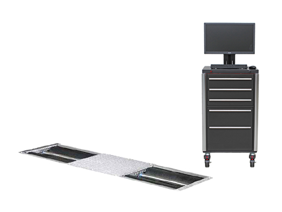"Roller brake test bench with composite-coated rollers. The set of rollers can be conveniently controlled from the vehicle using the easy-to-read 27 inch TFT flat screen and radio remote control. The test bench is equipped with a PC and thus network-capable.
