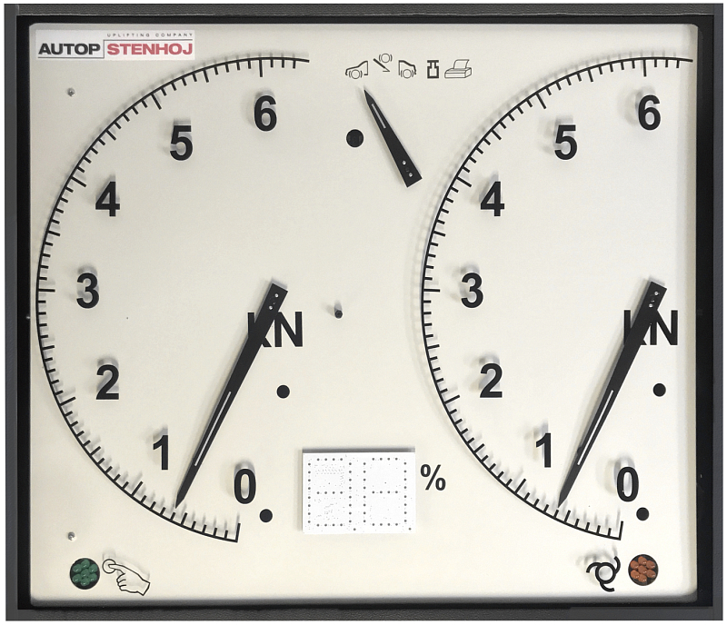 The brake test with an analog display. If necessary, the brake test bench can be extended to a test lane.
