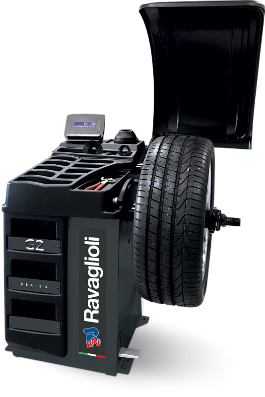 Stationary, microprocessor-controlled wheel balancing machine G2.124 BMW. For balancing passenger car wheels up to 26" rim diameter and 70 kg weight.